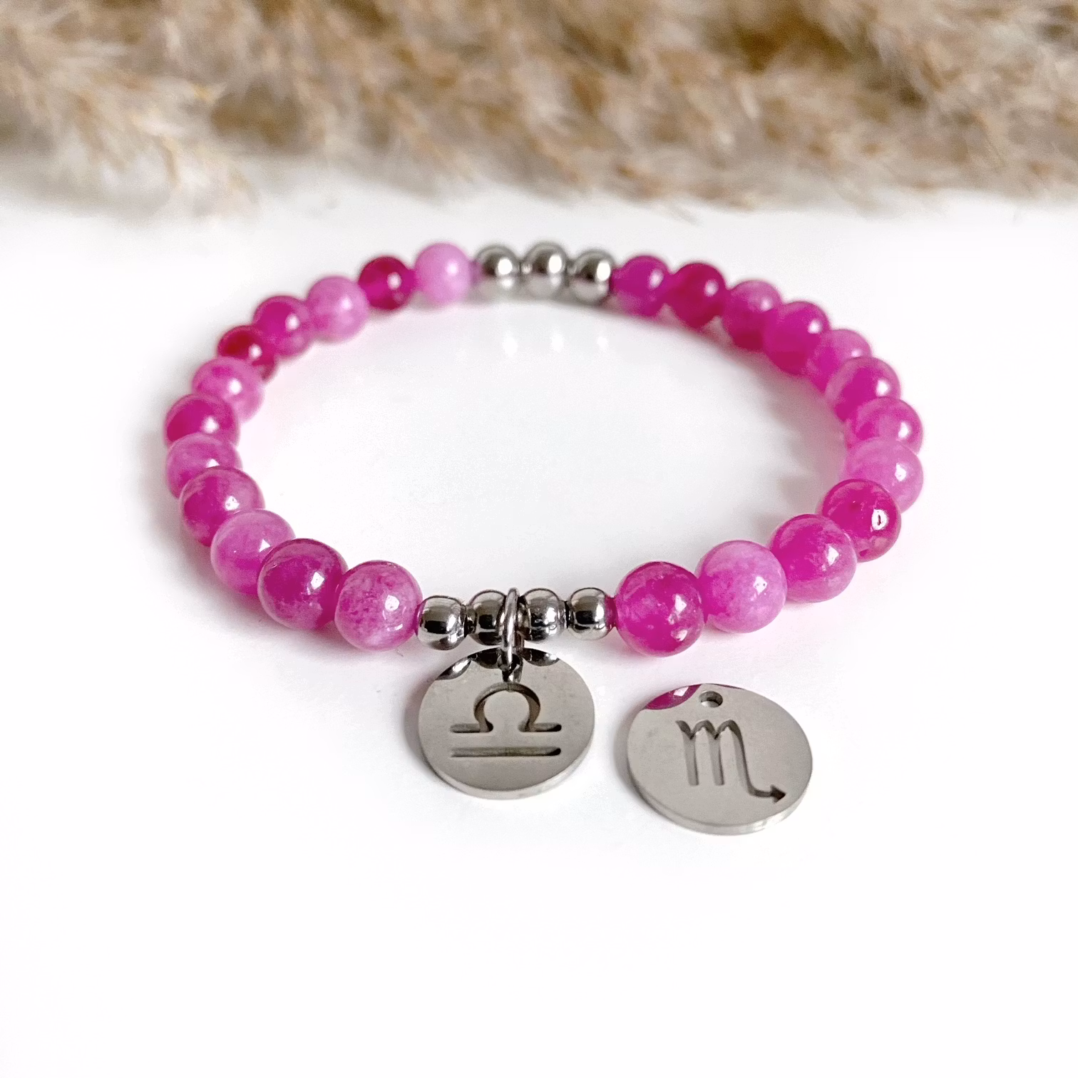 Månadssten för oktober är rosa turmalin. Välj ditt stjärntecken till armbandet. (våg 23/9-22/10 eller skorpion 23/10)